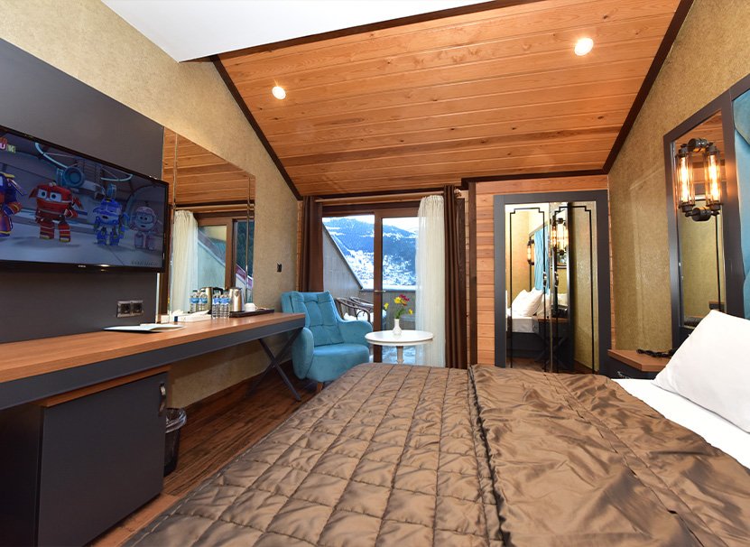 Otelimizin en üst katında bulunan Dubleks Aile Odası, tüm ayrıntıların düşünüldüğü, dört kişilik bir ailenin konaklamasına uygun, iki banyosu ve göl manzaralı terası ile ailece bir arada olmanın eşsiz keyfini sunmaya hazırdır.